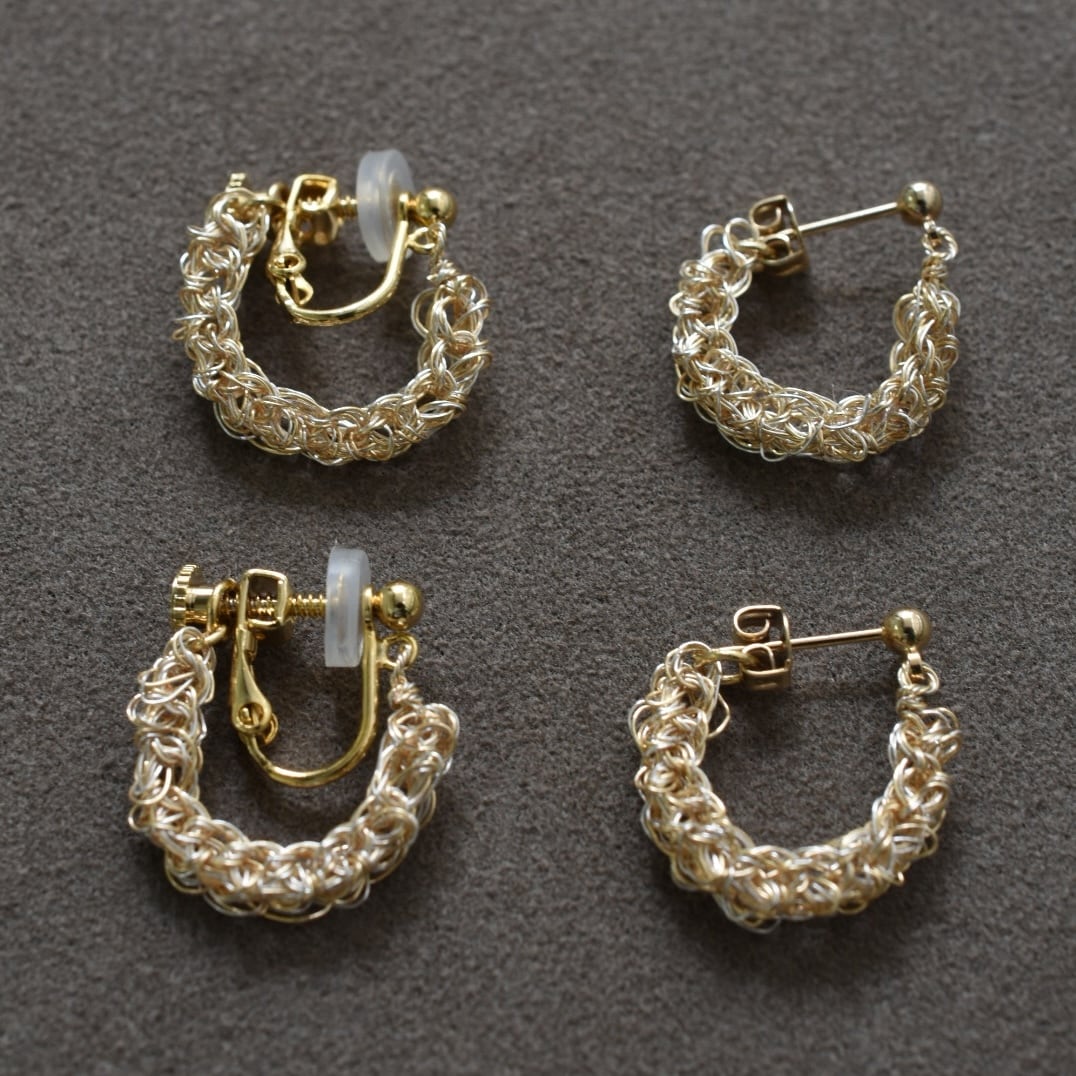 ワイヤークロッシェって女性らしくもあり(しなやかな編み目)、シュッとした格好良さ(金属の素材由来)もあって本当に素敵なアクセサリーだと思います。